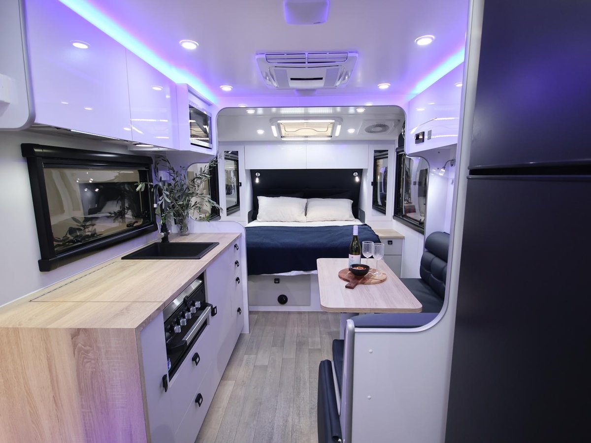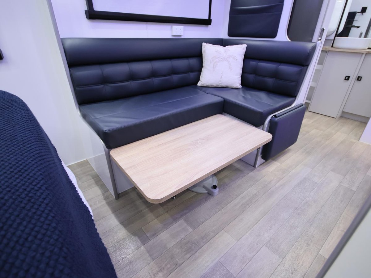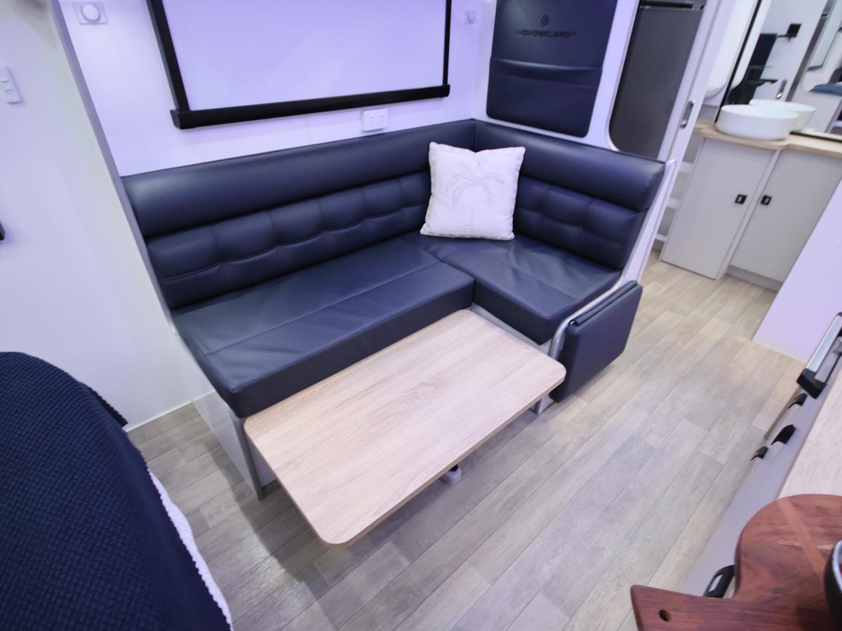 The smallest layout from wonderland, with a 17ft internal cabin space, full en-suite with shower and toilet, L shape lounge, kitchen and queen size main bed.
