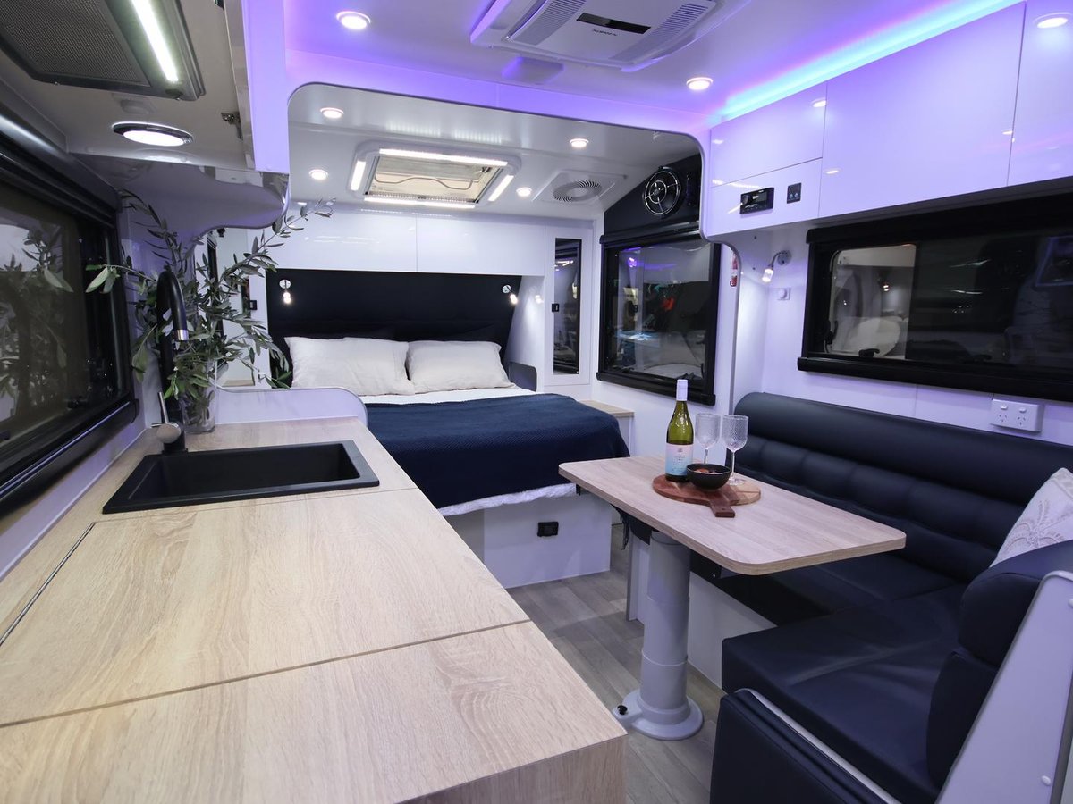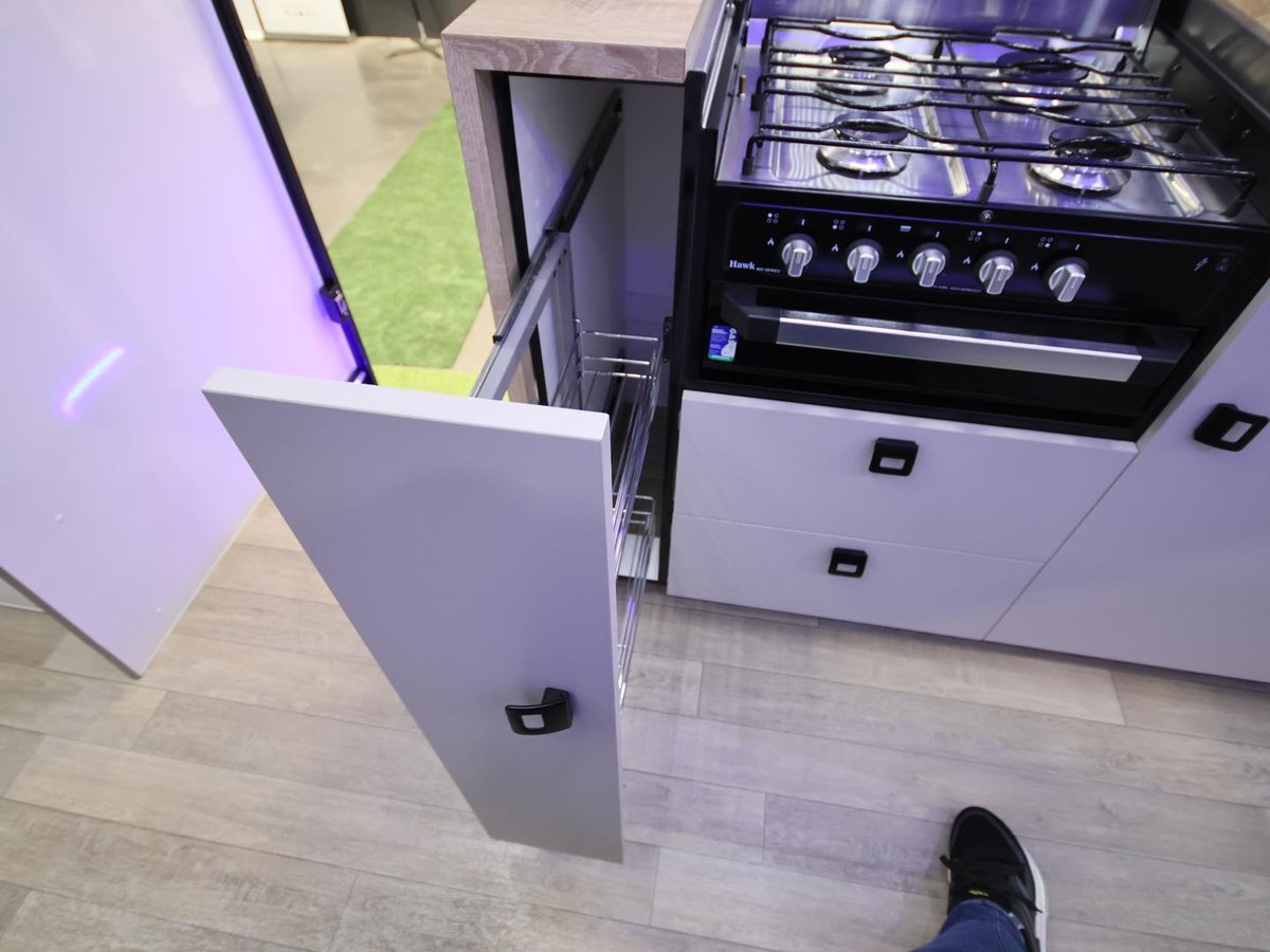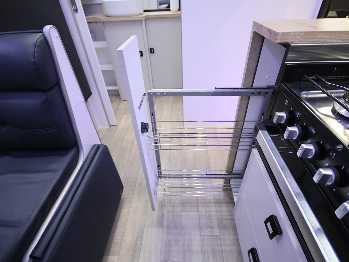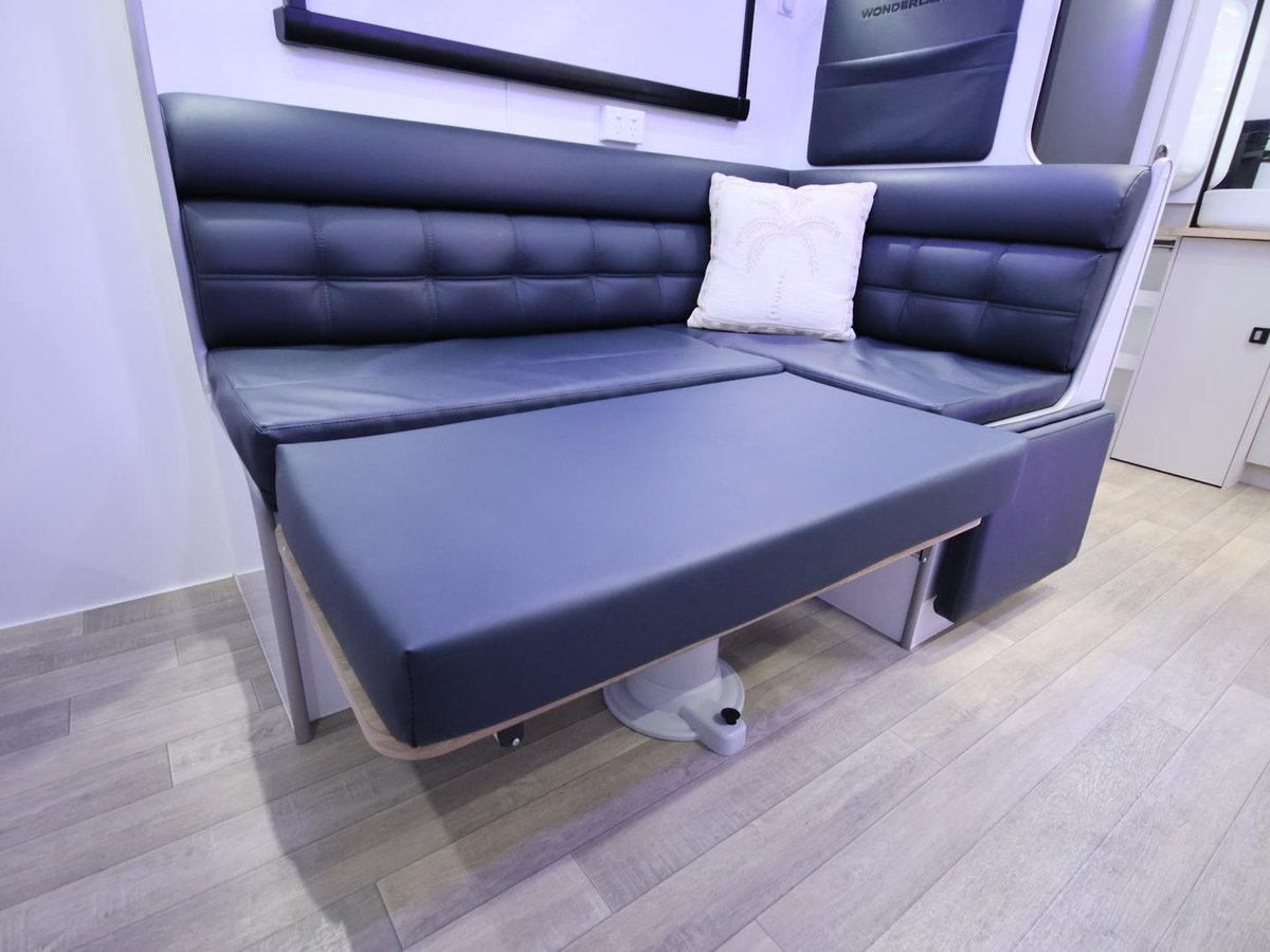 The smallest layout from wonderland, with a 17ft internal cabin space, full en-suite with shower and toilet, L shape lounge, kitchen and queen size main bed.